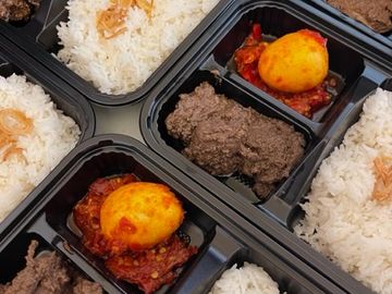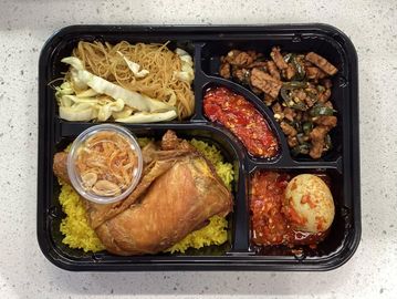 A minimum of 20 orders is required for any of catering order. Delivery is free from Tuesday-Thursday within 12miles radius; otherwise is $1.80/mile. An additional fee for $2/person to subsitute to Nasi Kuning (Turmeric Yellow Rice) or Nasi Uduk (Steamed Jasmine Rice Infused with Coconut Milk and other Herbs & Spices)
