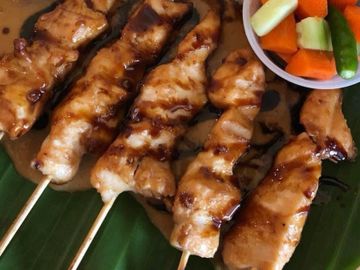 Grilled Chicken in Skewer Served in Peanut Sauce